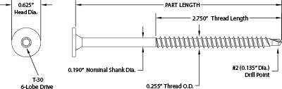 | HEAD STYLE/DRIVE: | Pancake Head with T-30 Internal Drive |